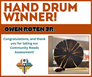 Congratulations to the Winner of this 14-inch Native American Made Hand Drum (Moose Hide) and Drum Stick, OWEN ROTEN JR.!